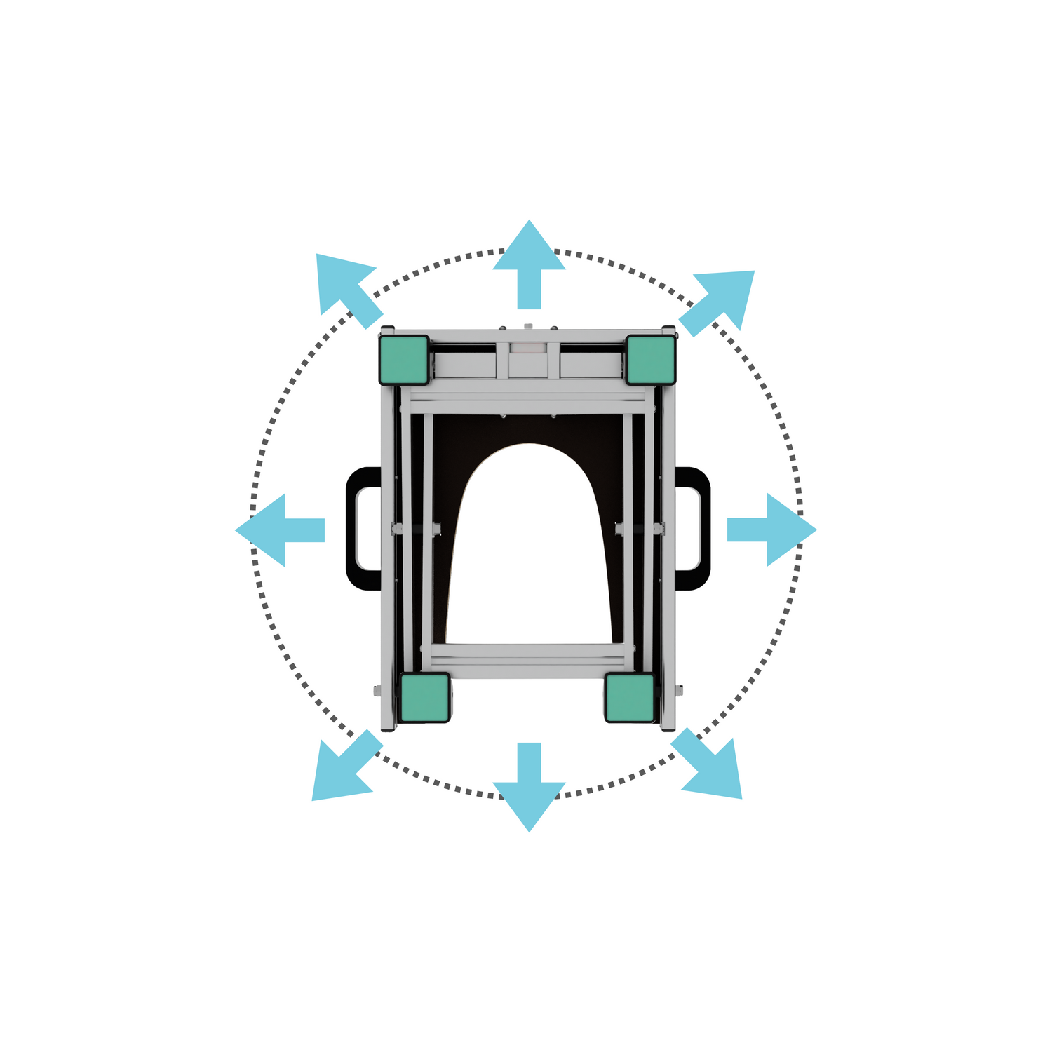 ✅ Speziell entwickelte Gleitrollentechnik – müheloses Rangieren direkt „auf der Achse“ ohne Umsetzen oder Nachjustieren
