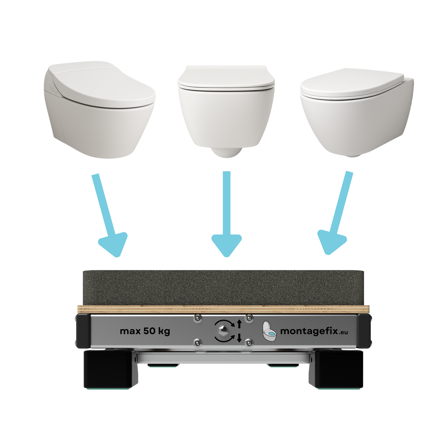 ✅ Millimetergenaue Höhenverstellung im Bereich von 90 mm – das WC kann dabei einfach auf dem Montagefix liegen bleiben